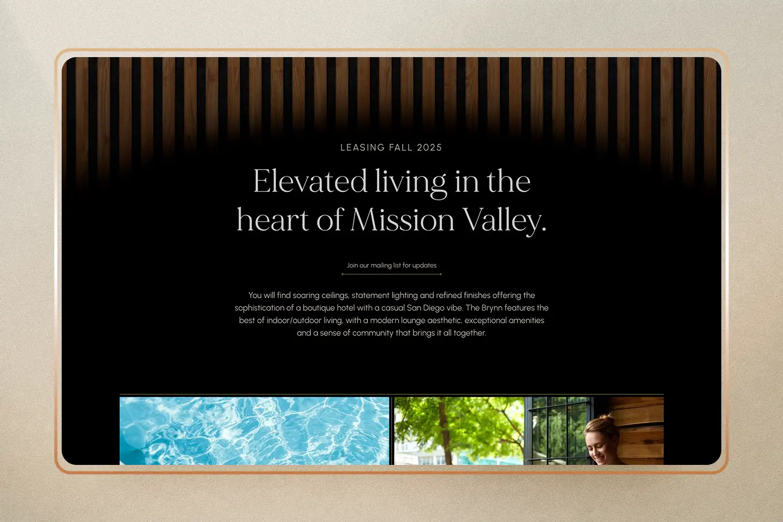 Messina was selected to lead the creation of The Brynn’s visual brand identity, beginning with a new logo crafted to mirror the refined and modern interior design. Working from interior renderings and early mood boards, our team developed a brand look and feel that brings the property’s sophisticated materials, tones, and architecture into the digital space.